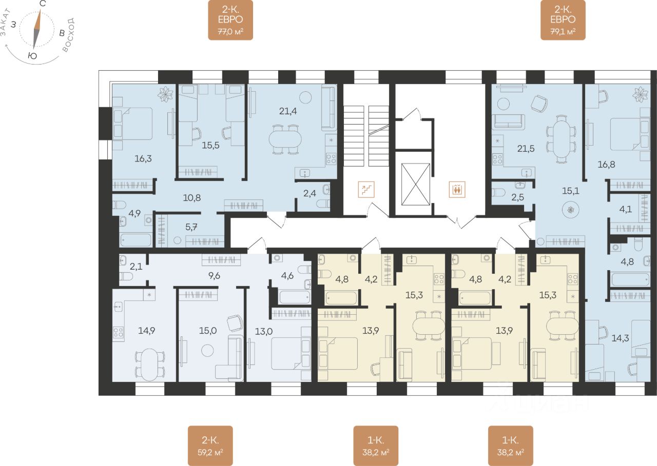 Двухкомнатные от 57 до 79 м2