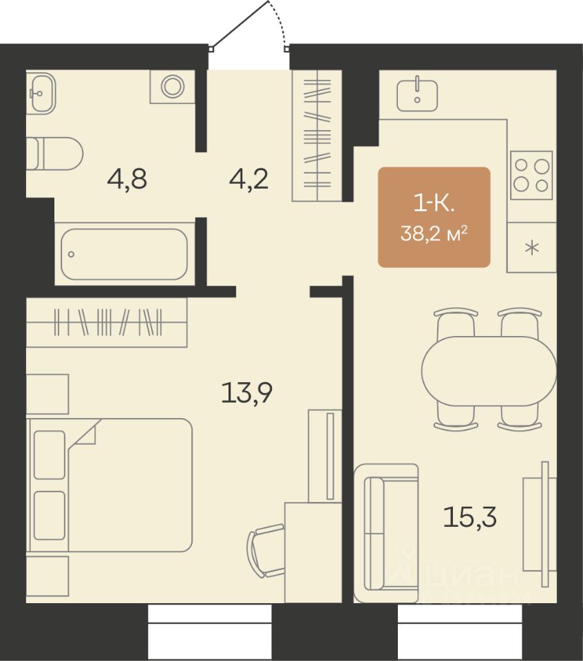 Однокомнатные от 38 до 46 м2