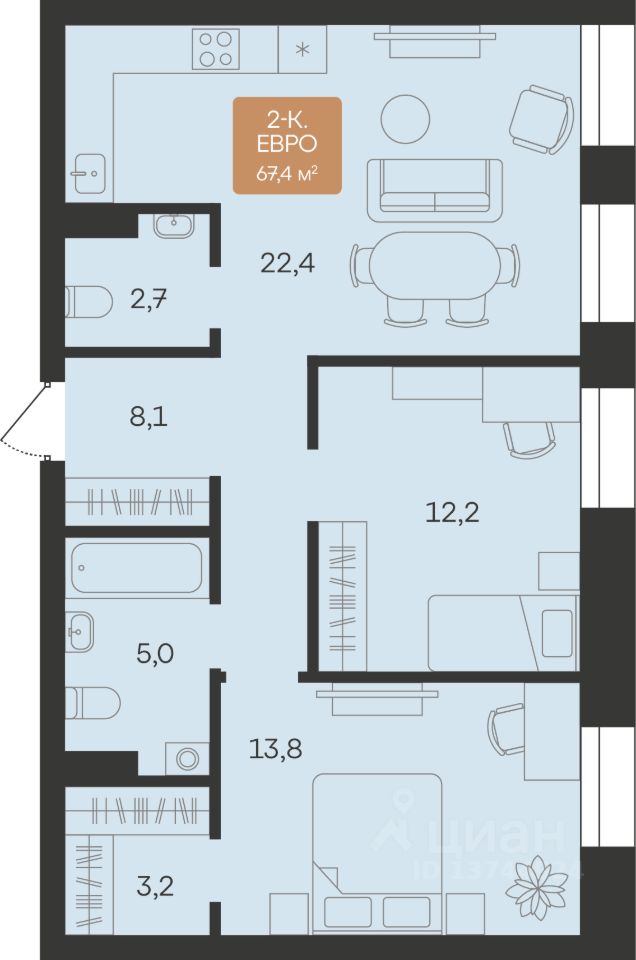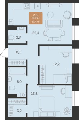 Двухкомнатные от 57 до 79 м2