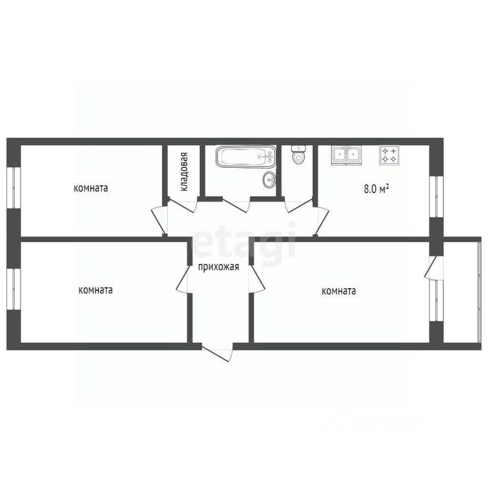 Предлагается к продаже 3-комнатная квартира под ремонт (59,2кв.м.)