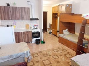 Продается современная студия, полностью соответствующая условиям семейной ипотеки со ставкой от 6%. В помещении косметический ремонт. Планировочное решение отличается продуманностью: кухонная зона эргономично интегрирована в общее пространство, а санузел выполнен в совмещенном формате.