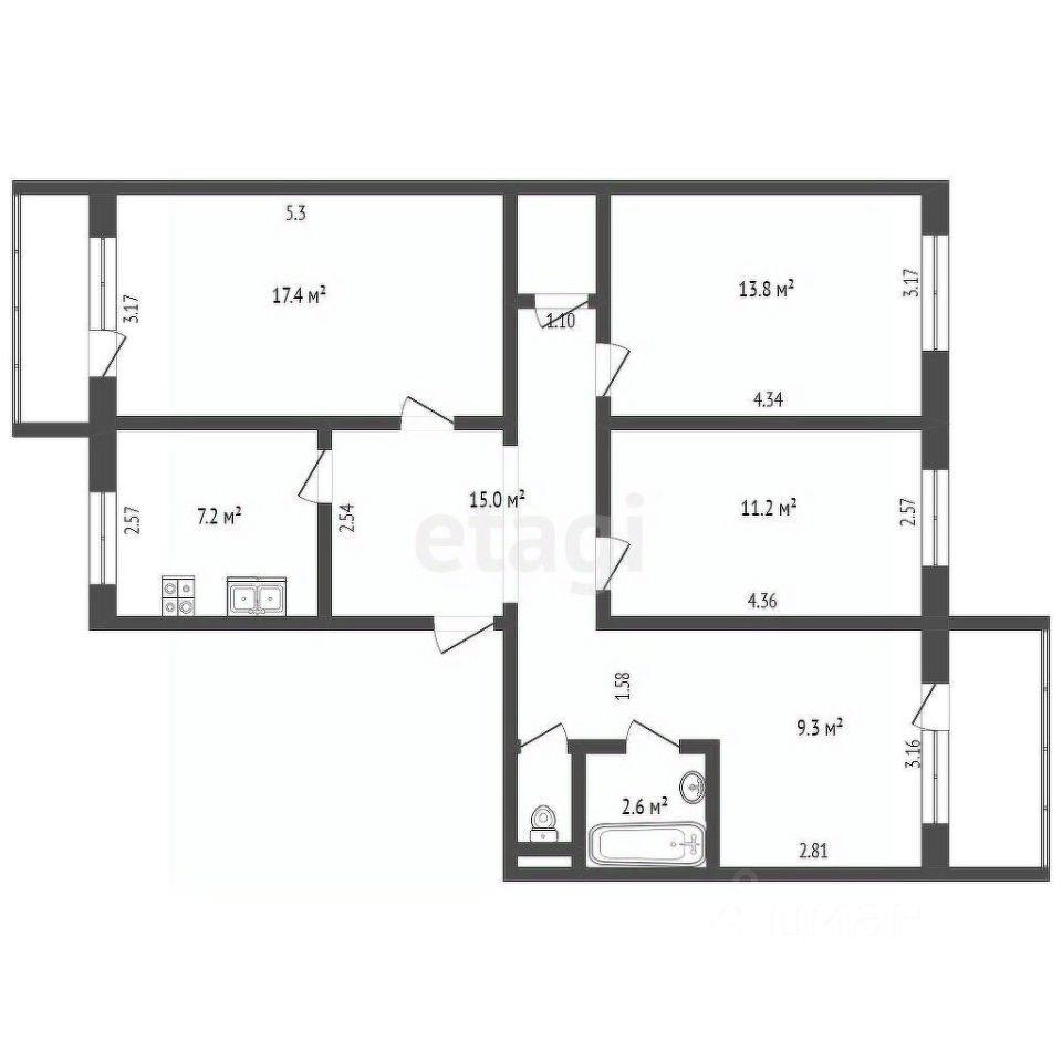 В квaртире имeется кухонный гаpнитуp c вcтроенным духовым шкафом, плитой, посудомоечной машиной. Два балкона, утепленные и отделанные, предлагают прекрасный вид как во двор, так и на улицу.
