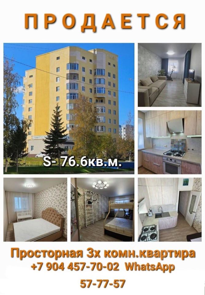 Продаётся уютная трехкомнатная квартира в Надыме, на бульваре Стрижова, д.1. Общая площадь квартиры составляет 76,6 кв. м, из которых 48,7 кв. м — жилая площадь. Квартира расположена на девятом этаже десятиэтажного дома.