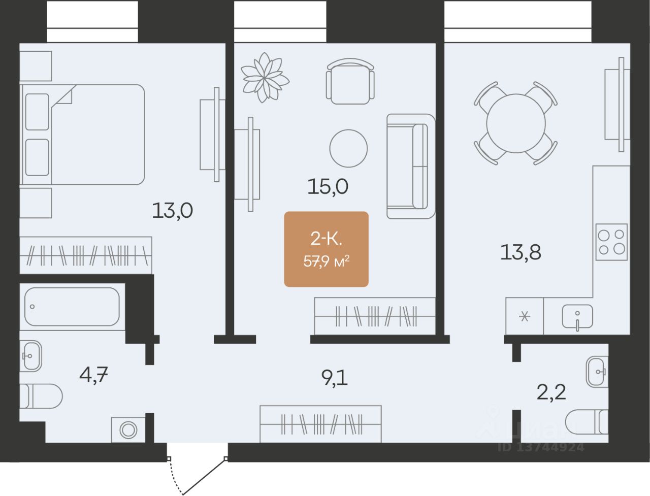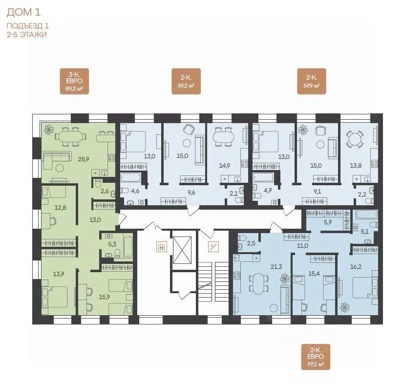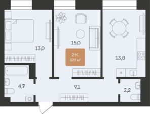 Двухкомнатные от 57 до 79 м2