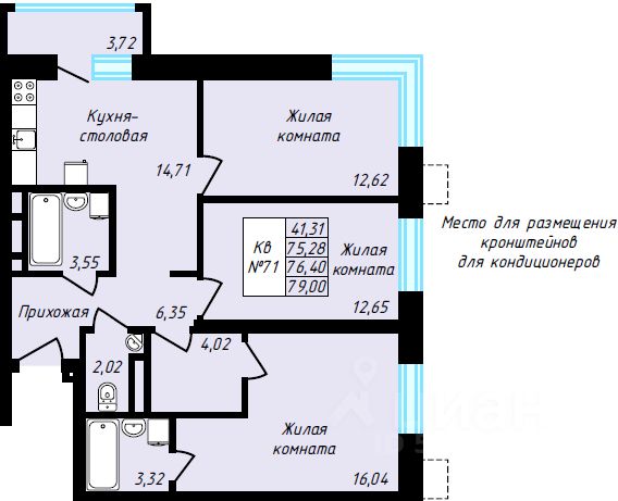 Общая площадь76,4 м²