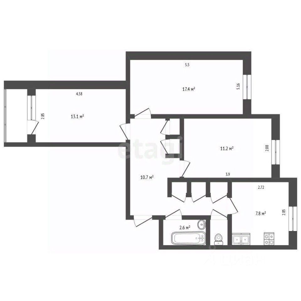 Кухня площадью 9 м² оборудована современной техникой, включая посудомоечную машину, и выполнена в светлых тонах. В ванной комнате установлена современная сантехника и раздельное освещение.