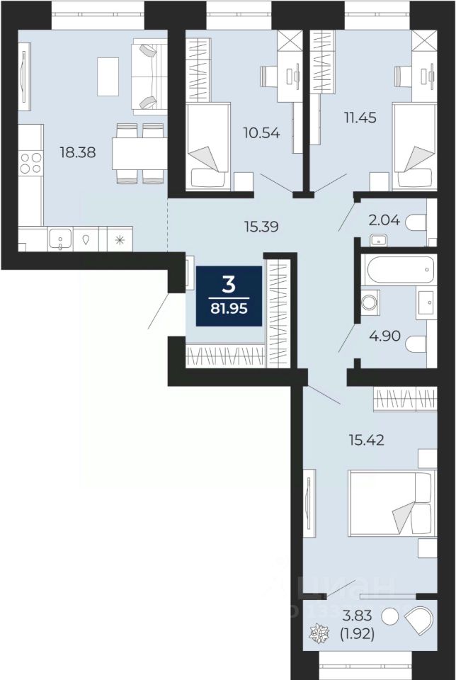 Трехкомнатная квартира с предчистовой отделкой в ЖК "Преображенский" на 4 этаже. Общая площадь: 80.04 кв.м., жилая: 37.41 кв.м., площадь просторной кухни-столовой: 18.38 кв.м. Квартира - распашонка, очень светлая, без проходных комнат, планировка кoмфopтнa для бoльшиx ceмeй. В квартире один балкон, один совмещенный и один раздельный санузел. Высота потолков 2.7 м.