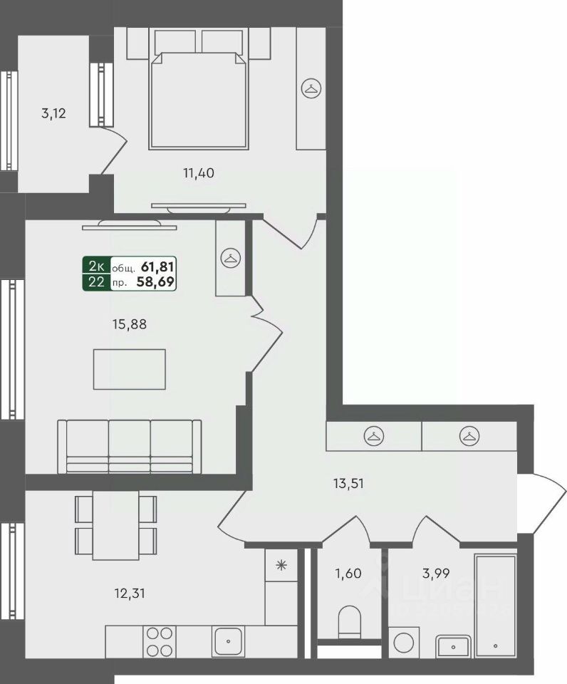 2-комн. от 57,65 м²