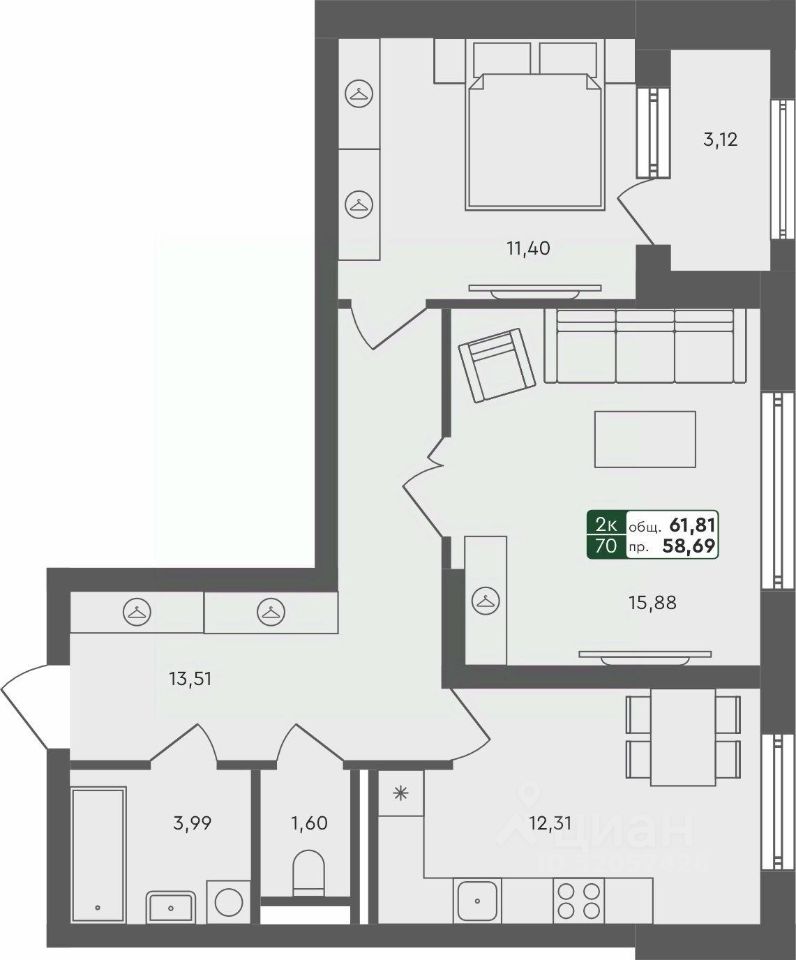 2-комн. от 57,65 м²
