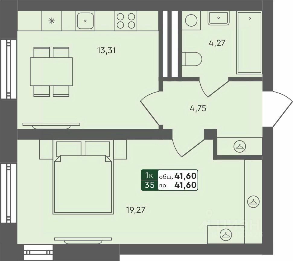 1-комн. квартира, 42,53 м²