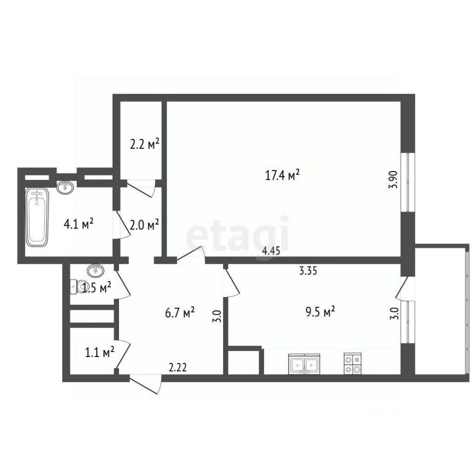 44,5 м²