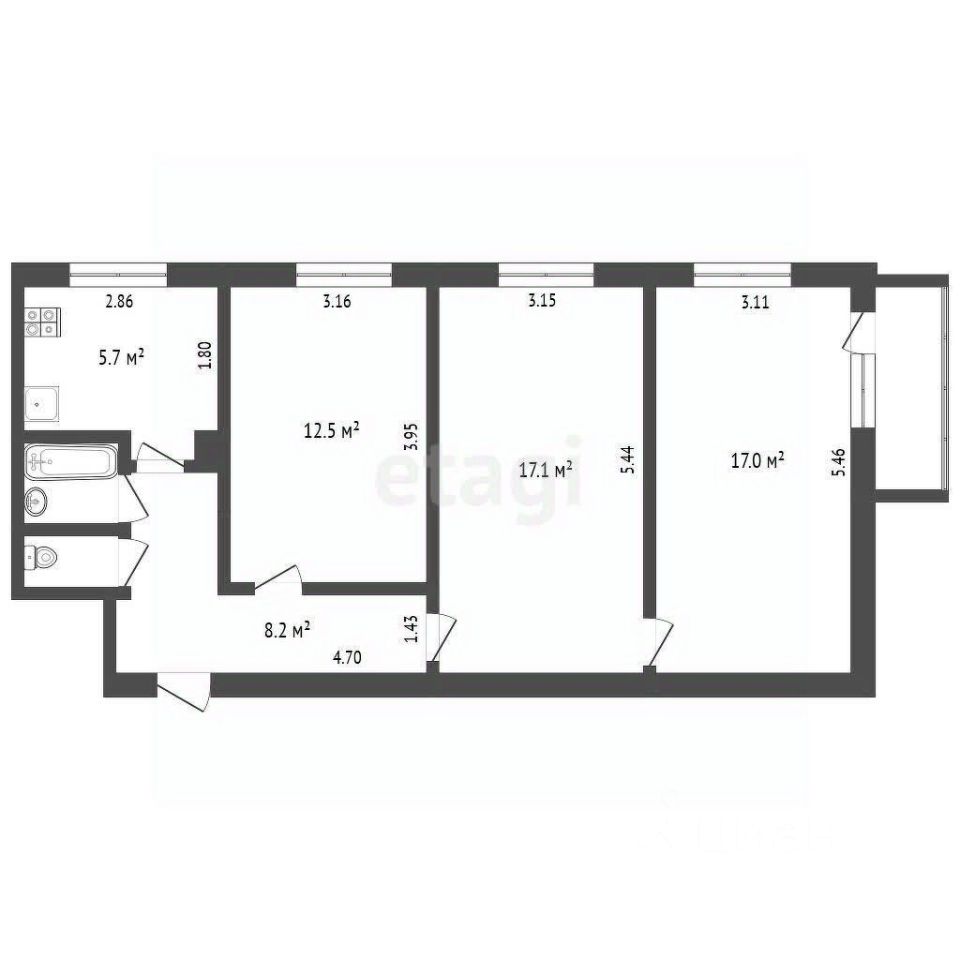 17,1 м²