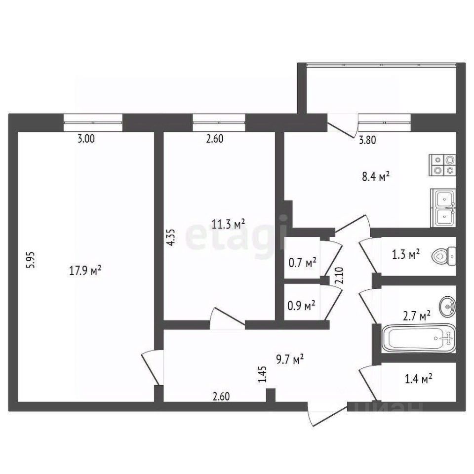 55,7 м²