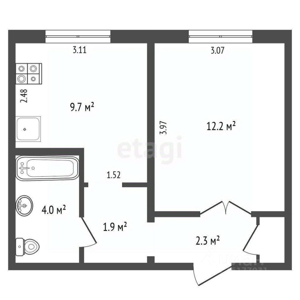 Компания "Этажи" предлагает вашему вниманию продажу секции многоквартирном доме в центре города. Общая площадь - 30,8 м2, кухня - 9,7 м2, комната - 15,2 м2, санузел - 4 м2.