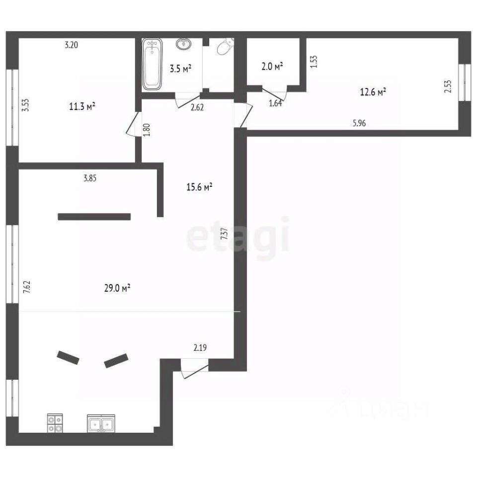 Продается квартира формата евротрешки с просторной кухней-гостинной. Дом капитальный, кирпичный.