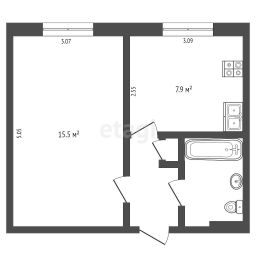 Санузел со стильной керамической плиткой, новая ванна, унитаз, тумба с мойкой и шкаф с зеркалом. Установлена новая стиральная машина, а также новые счетчики — все для вашего удобства! Кухня оборудована новым кухонным гарнитуром и холодильником.