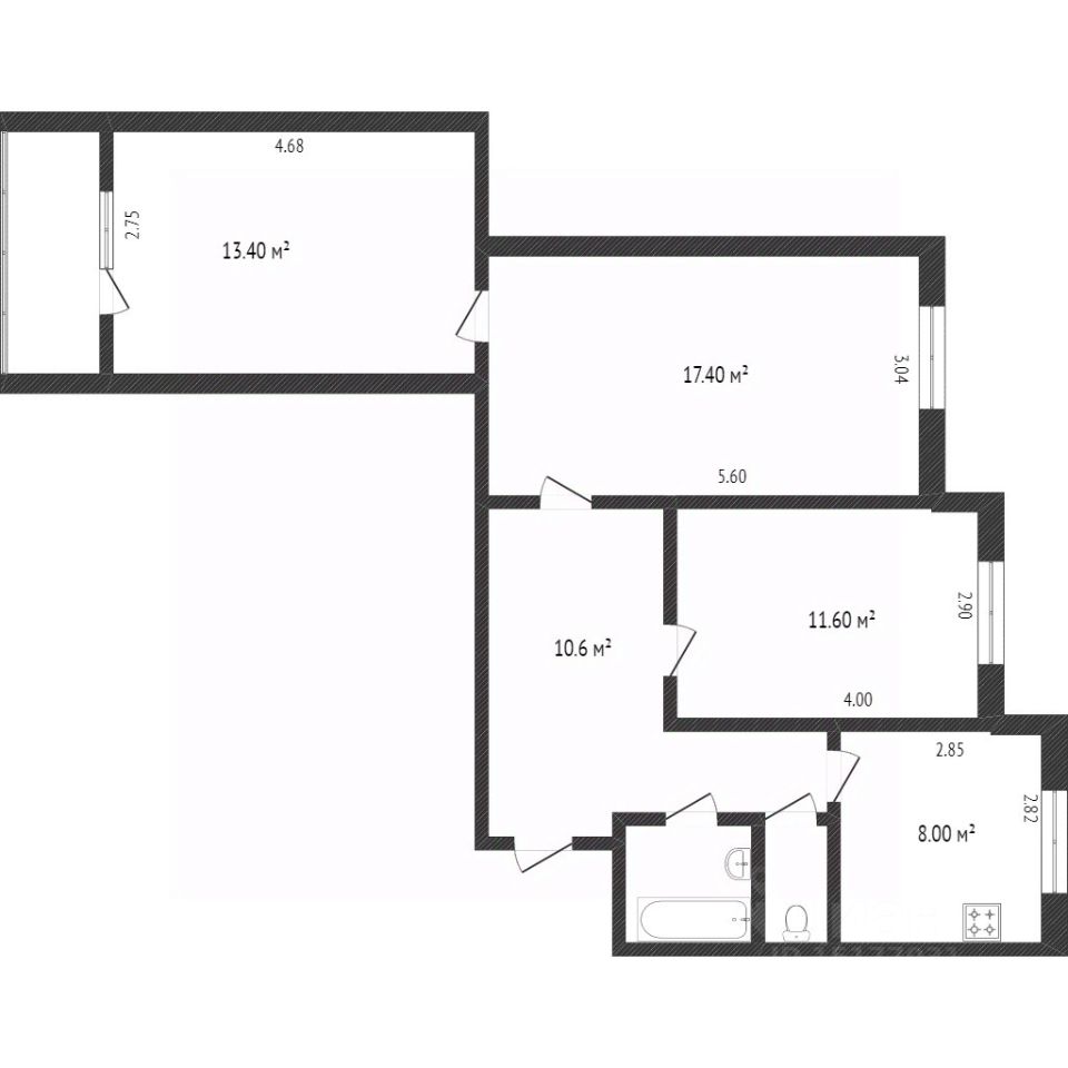 Просторная планировка включает одну проходную комнату, что позволяет гибко организовать пространство под ваши нужды. Раздельный санузел, выложенный кафелем, добавляет удобства в повседневной жизни.