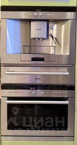 Просторная кухня площадью 12,3 м² оборудована встроенной техникой, включая холодильник, посудомоечную машину и духовой шкаф и кофемашину. Вся техника на кухне марки Сименс. Установлена система фильтрации воды.