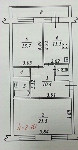 Арт. 133083909 Просторная 2-комнатная квартира 62,8 м² с капитальным ремонтом в кирпичном доме 2002 года.