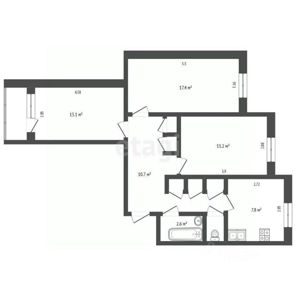 Кухня площадью 9 м² оборудована современной техникой, включая посудомоечную машину, и выполнена в светлых тонах. В ванной комнате установлена современная сантехника и раздельное освещение.