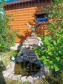 Территория полностью благоустроена, большая парковка с электроворотами, по участку установлены дорожки с освещением территории, небольшой пруд с водопадом, завезен грунт, посеяна трава, посажены деревья (березы, рябина, сирень, яблоня, декоративные и плодовые кустарники).