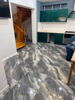 Планировка дома функциональна и продумана. На первом этаже расположена просторная зона, объединяющая кухню и гостиную, что создает удобное пространство для отдыха и приема гостей. На второй этаж ведет деревянная лестница, где находятся изолированные комнаты, разделенные панелями. К основному зданию пристроен гараж, обеспечивающий безопасное хранение автомобиля и дополнительное хозяйственное пространство. В доме выполнен частичный ремонт, что позволяет новым владельцам завершить отделку по своему вкусу.