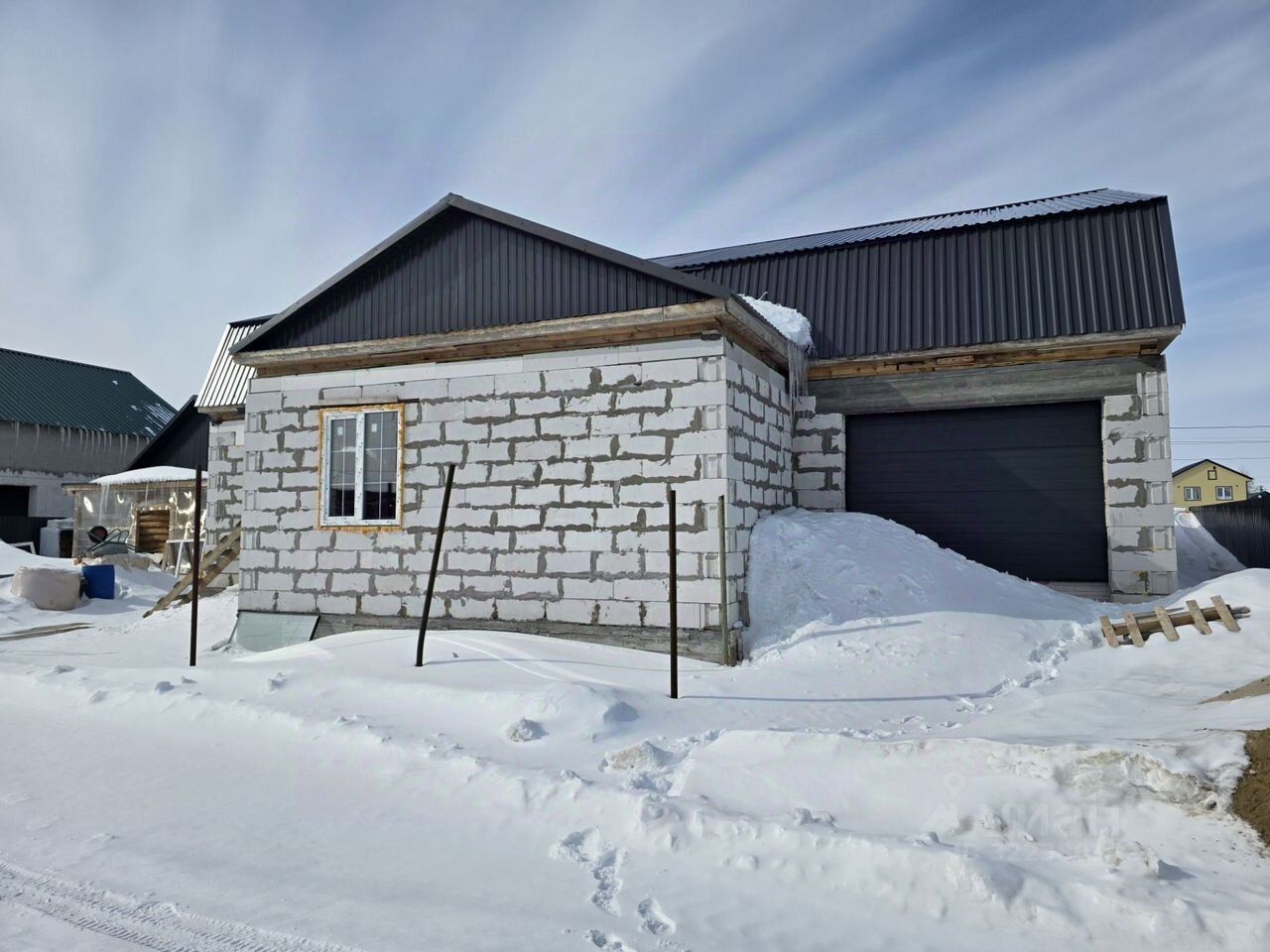 Продаю отличный дом 1214, с мансардной крышей))строили для себя. Фундамент ленточный 80см, сверху монолитная плита 20 см. Стены из пеноблока, выполнена качественно электрика по всему дому, есть 380В, установлены пластиковые окна (дорогие), канализация, есть скважина, септик 17куб. На участке построена баня из бруса 56, сделаны тёплые полы, скажина 12м, электрика, выведена канализация. На участке много строительного материала.