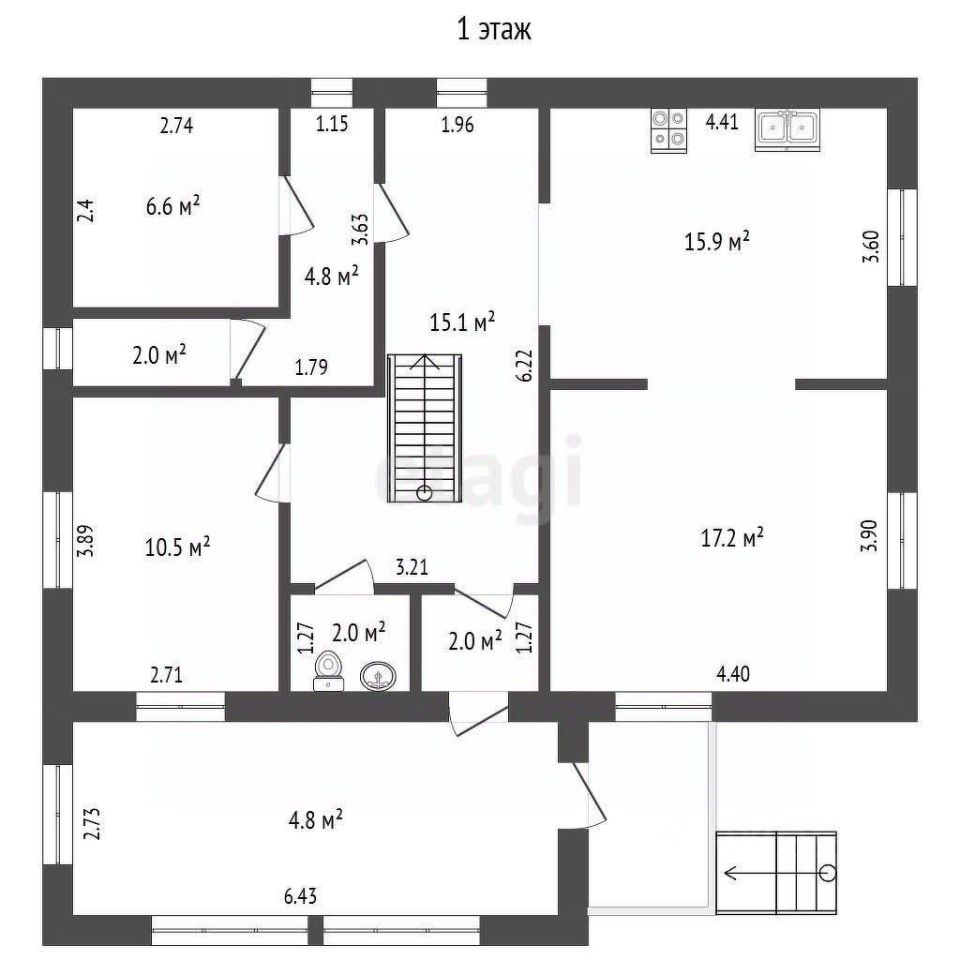 Жилой 2-х этажный деревянный дом общей площадью 179,6 кв.м.: длина 11,2 м. ширина 11,1 м., высота двух этажей 5,1 м, всего здания - 7,54 м. Дом стоит на свайном основании: сваи из труб 273 мм в количестве 16 шт. погружены на глубину до 6 м. Вентилируемое подполье 1,5 м. Стены из бруса 200*200 мм, пол деревянный с подогревом от теплоносителя. Перекрытия деревянные, дом снаружи утеплен жесткой минераловатной плитой RockWool и ветро-влагоизоляционной пленкой, обшит металлосайдингом. Крыша металлочерепица. В доме имеется баня на дровах 7 кв.м., в гостиной камин. В дом заведен проводной интернет от Ростелеком. Для просмотра телевизионных каналов установлена эфирная антенна и спутниковая тарелка "Триколор". В доме находятся в эксплуатации стиральная машина Candy, встриваемая посудомоечная машина Электролюкс, холодильник Аристон, газовая плита с духовкой Электролюкс, вытяжка Крона и встраиваемая микроволновая печь Электролюкс.