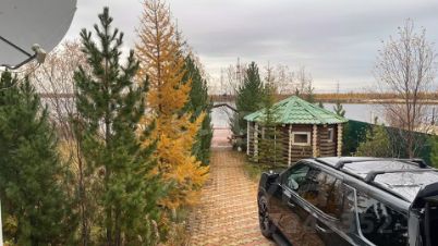 Дом расположен на земельном участке 12 соток. На территории уложена брусчатка на дорожных плитах и песчано-цементной подушке.На озеро ведет деревянный настил на сваях и у пирса вымыта яма для купания глубиной до 3м и диаметром около 25 м (конус). Между домом и озером обустроена мангальная зона под навесом.