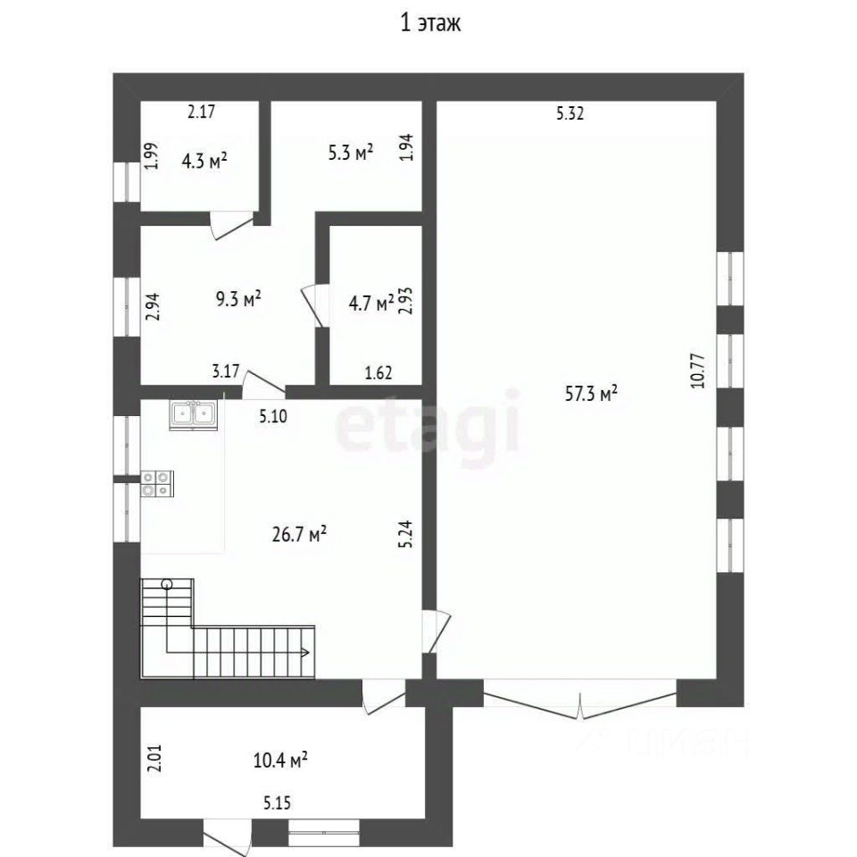 На первом этаже расположены прихожая 10 м.кв., комната гостиная, санузел совмещенный: установлена душевая кабина. Отличная мягкая парная с бассейном. Вход в гараж.