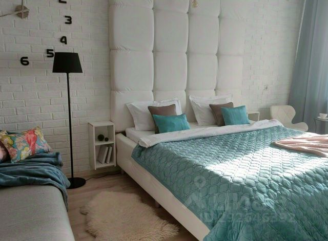 - В спальне с уютным интерьером размещена двуспальная кровать с ортопедическим матрасом. Портьеры на окнах обеспечат светоизоляцию. Уют и комфорт привносят ковер и прикроватные тумбы с изящными светильниками. Туалетный уголок, включающий в себя комод, зеркало и красивый табурет, обеспечит достойный личный уход.