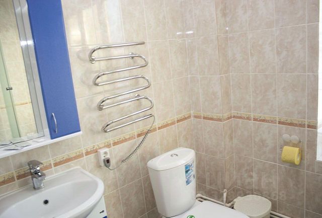 В ванной: туалет, раковина, душ.